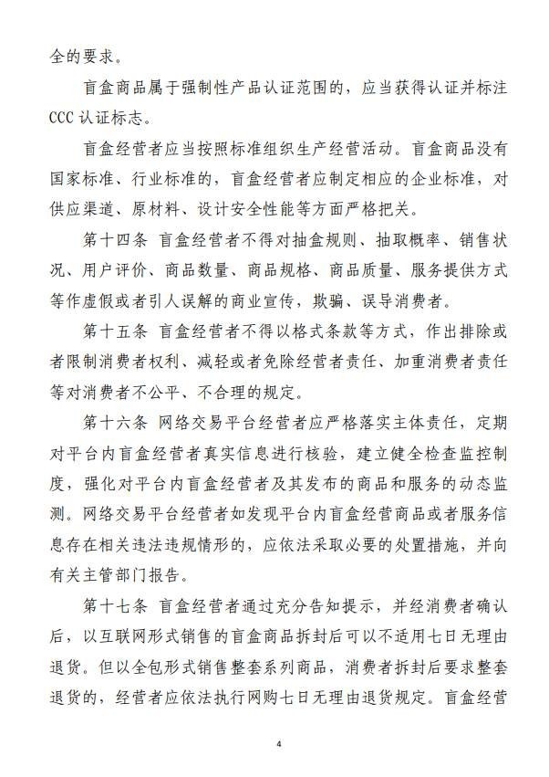 三、通過信函將意見郵寄至:北京市西城區(qū)三里河東路8號市場監(jiān)管總局執(zhí)法稽查局,郵政編碼:100820,并在信封上注明“盲盒經(jīng)營活動規(guī)范指引公開征求意見”字樣。