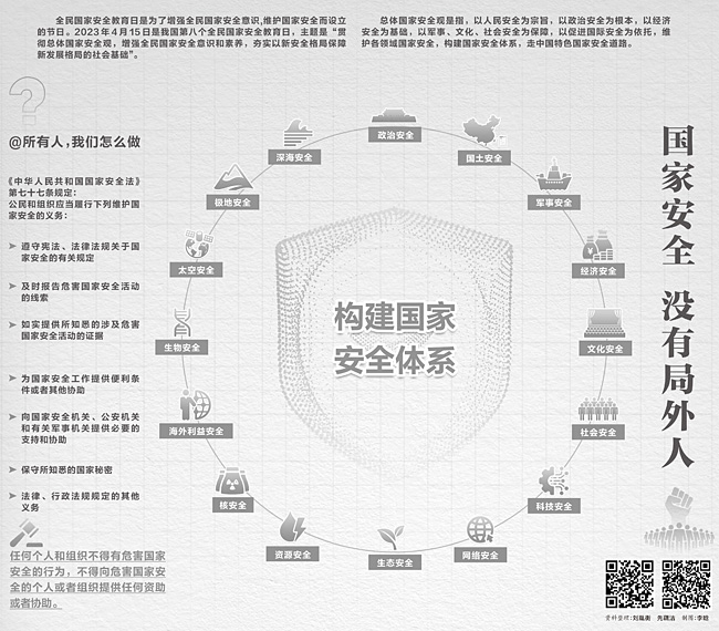 全民國家安全教育日是為了增強全民國家安全意識,維護國家安全而設立的節(jié)日。2023年4月15日是我國第八個全民國家安全教育日,主題是“貫徹總體國家安全觀,增強全民國家安全意識和素養(yǎng),夯實以新安全格局保障新發(fā)展格局的社會基礎”。
