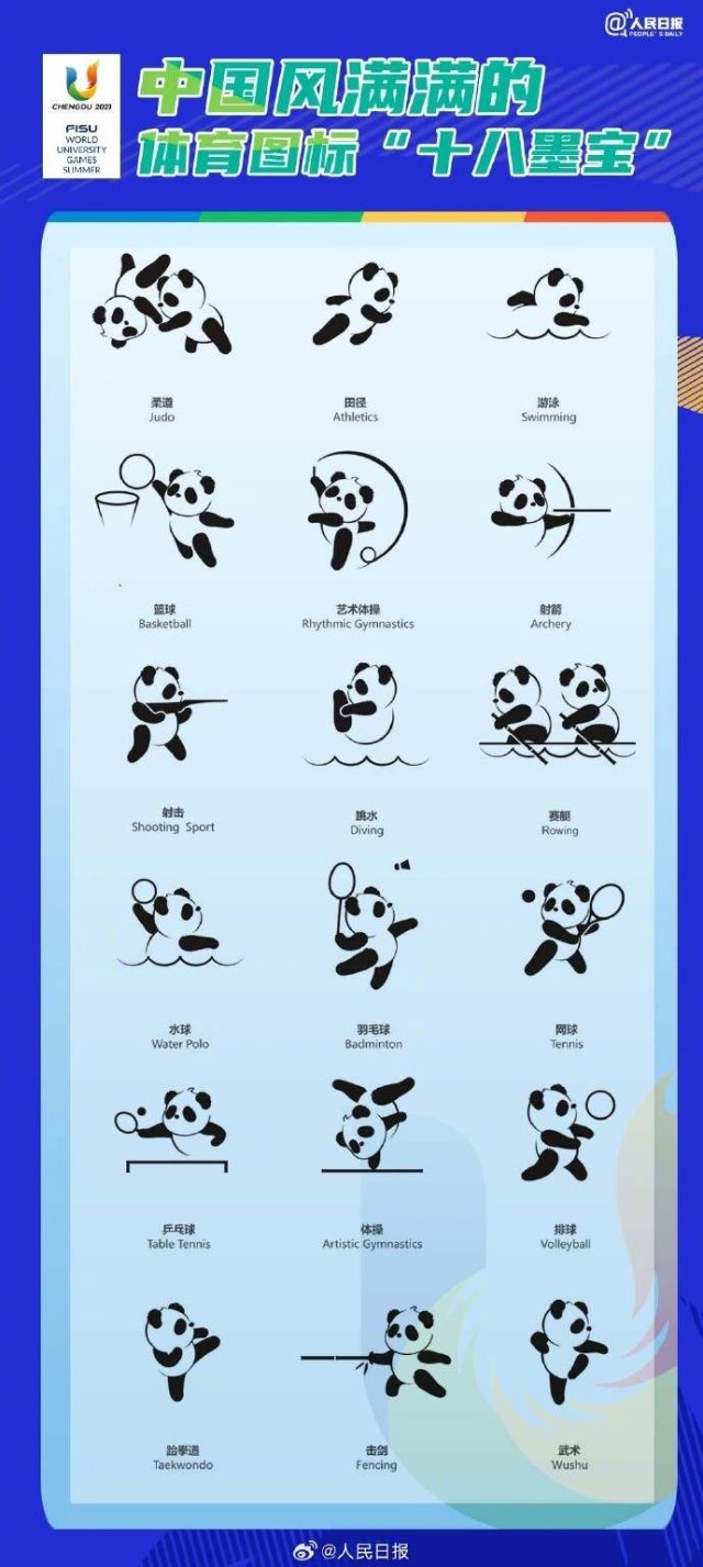 第31屆世界大學(xué)生夏季運(yùn)動(dòng)會(huì)將于7月28日—8月8日在四川成都舉辦?!叭貙殹薄叭鼗稹薄叭毓狻?,傻傻分不清?可愛(ài)的熊貓圖標(biāo),認(rèn)得出是哪個(gè)項(xiàng)目嗎?此外,這些體壇名將曾參加過(guò)大運(yùn)會(huì)!成都大運(yùn)會(huì)還有2周開(kāi)幕,期待!