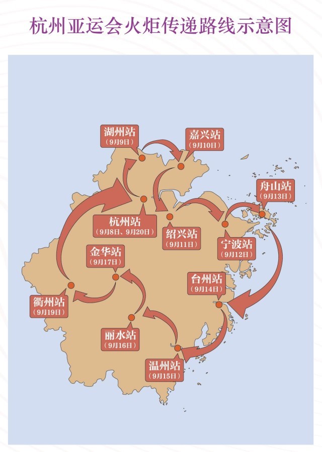杭州首日的傳遞結束之后,就將開啟浙江全省的傳遞,遍布11個地市,9月20日將回到杭州并完成最后一站傳遞。