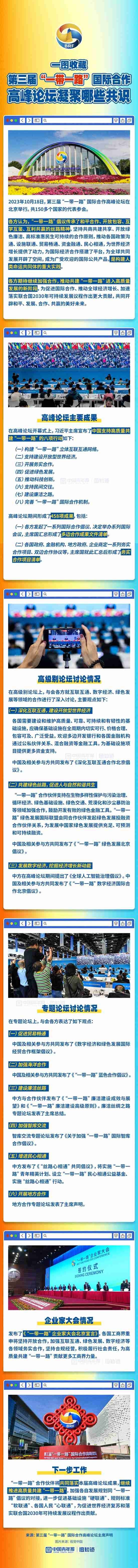 2023年10月18日,第三屆“一帶一路”國際合作高峰論壇在北京舉行,共150多個(gè)國家的代表參會(huì)。這次論壇上凝聚了與會(huì)各方哪些共識(shí)?一圖收藏