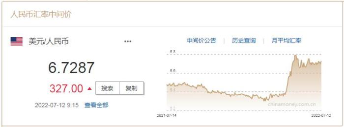 12日人民幣對美元匯率中間價6.7287元 下調(diào)327個基點