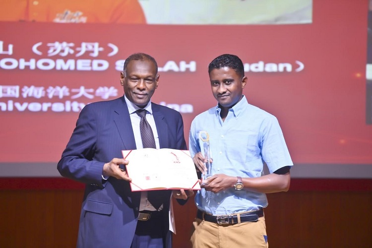 蘇丹駐華大使奧馬爾·薩迪格為獲獎作品導演霍山頒獎。北京師范大學提供圖片