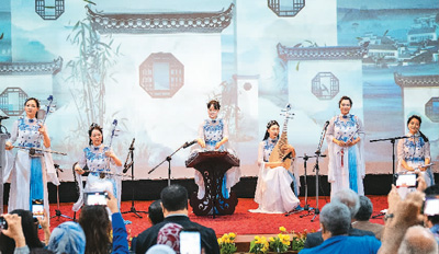身著中國傳統(tǒng)服飾,景德鎮(zhèn)瓷樂隊的姑娘們自信地登上舞臺,用瓷甌、瓷二胡、瓷琵琶、瓷笛,帶來令人耳目一新的瓷樂合奏,為當(dāng)?shù)赜^眾獻上一場極具中國傳統(tǒng)意蘊的音畫大賞。