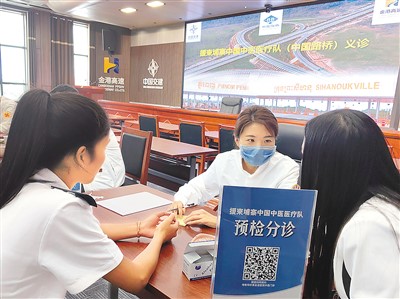 金港高速是柬埔寨第一條高速公路,是中柬共建“一帶一路”重點項目,柬埔寨本地員工占比達(dá)到88%。這里高溫高濕的工作環(huán)境,導(dǎo)致頸肩腰腿痛疾病及胃腸病在員工中高發(fā)。義診現(xiàn)場,中醫(yī)醫(yī)師用心傾聽每個員工的癥狀和困擾,望聞問切,耐心診察,辨證施治,制定個性化的治療方案。