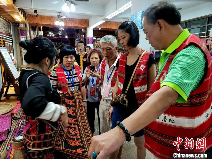 臺(tái)北市商業(yè)總會(huì)一行在海南檳榔谷景區(qū)觀(guān)看黎錦作品?!⊥鯐员?攝
