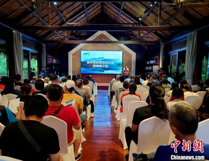 保亭縣向來(lái)訪(fǎng)臺(tái)灣同胞介紹當(dāng)?shù)亻_(kāi)發(fā)投資項(xiàng)目?!⊥鯐员?攝
