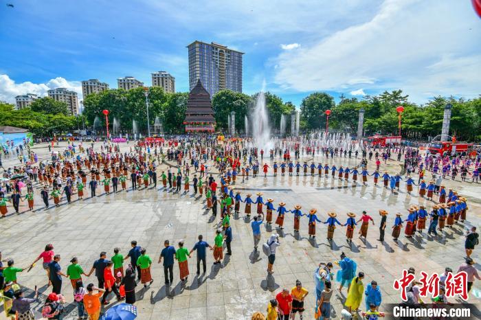 嬉水節(jié)活動(dòng)現(xiàn)場(chǎng),臺(tái)灣同胞與當(dāng)?shù)孛癖娨坏垒d歌載舞歡度“七夕”?!●樤骑w 攝