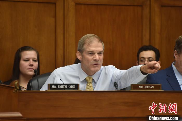 當?shù)貢r間10月13日,美國國會眾議院共和黨人就議長候選人再次進行黨內(nèi)投票,眾議院司法委員會主席吉姆·喬丹獲得黨內(nèi)提名。圖為喬丹今年9月在眾議院監(jiān)督和問責委員會聽證會上發(fā)言。 中新社記者 沙晗汀 攝