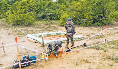 去年,為期3個(gè)月的中國(guó)援助柬埔寨、老撾人道主義掃雷培訓(xùn)班在陸軍工程大學(xué)(南京)舉辦,40名來(lái)自柬埔寨、老撾的學(xué)員接受了培訓(xùn)。從理論知識(shí)到專項(xiàng)技能訓(xùn)練,從實(shí)爆作業(yè)到雷場(chǎng)仿真訓(xùn)練,再加上學(xué)習(xí)運(yùn)用雷場(chǎng)無(wú)人機(jī)勘察、機(jī)器人排爆、激光排雷銷(xiāo)毀等新技術(shù)手段,學(xué)員們受益頗深?!霸谌A培訓(xùn)的3個(gè)月里,中方教員掃雷技術(shù)扎實(shí)專業(yè)、講授耐心細(xì)致,給我留下了深刻印象?!眮?lái)自柬埔寨的參訓(xùn)學(xué)員艾恩說(shuō)。據(jù)了解,截至目前,陸軍工程大學(xué)已為柬埔寨、老撾兩國(guó)開(kāi)辦8期掃雷培訓(xùn)班,培養(yǎng)300余名專業(yè)技術(shù)人才。