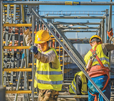 施工人員正在進(jìn)行橋梁施工作業(yè)。