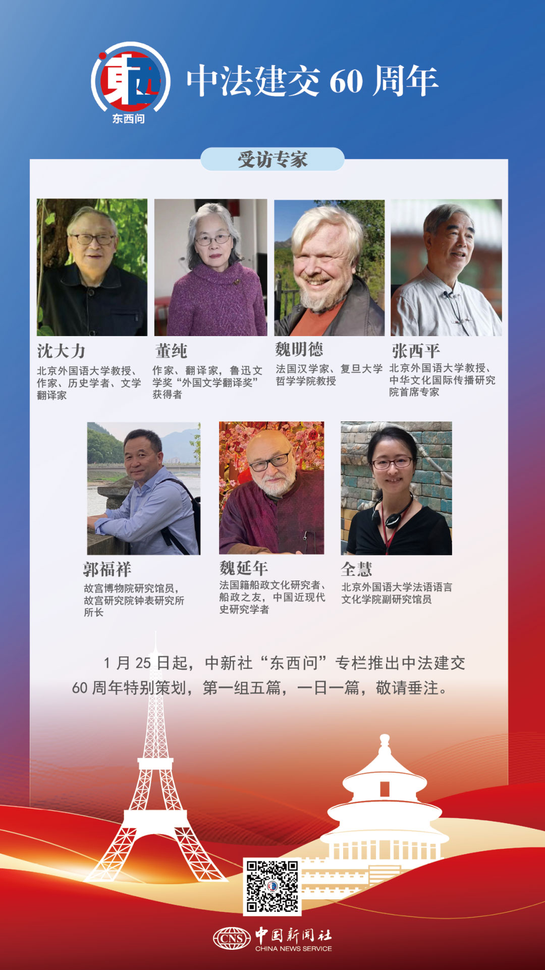 2024年1月27日,中法迎來建交60周年紀(jì)念日。1964年1月27日,中法兩國發(fā)表聯(lián)合公報(bào),正式建立大使級(jí)外交關(guān)系,法國由此成為第一個(gè)與新中國建交的西方大國。2024年,中法已攜手走過一甲子的非凡歷程。60年來,中法民間交流越來越多元、密切。文明互鑒文化交流的視域下,中法建交有何重要意義?近期兩國簽證互惠政策,將對中法人文交流起到怎樣的促進(jìn)作用?