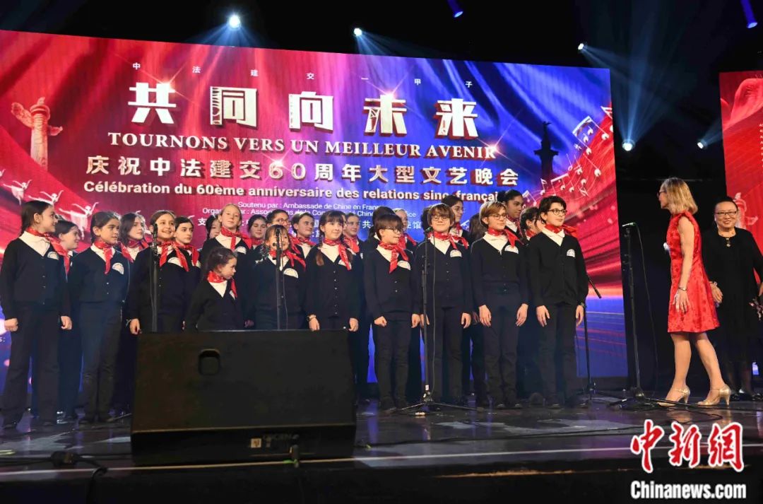 當(dāng)?shù)貢r(shí)間2024年1月16日晚,以“共同向未來”為題的慶祝中法建交60周年大型文藝晚會(huì)在巴黎舉辦。圖為法國寶利聲童聲合唱團(tuán)演唱歌曲。李洋 攝