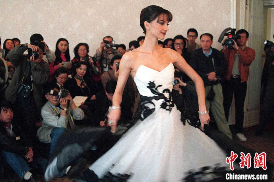 1996年,來自法國巴黎的時(shí)裝代表團(tuán)在北京飯店展示服裝。錢興強(qiáng) 攝