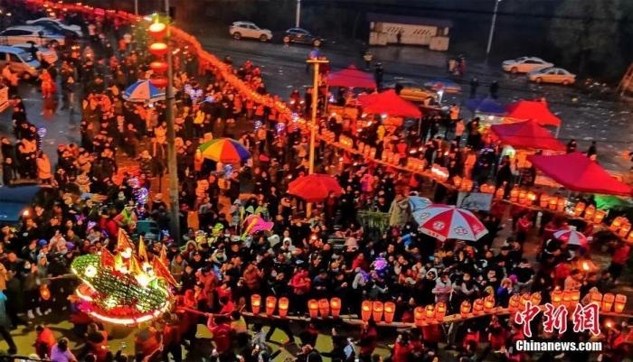 南昌“板凳龍”游街綿延千米 人山人海場面壯觀。劉占昆 攝