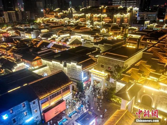航拍江西南昌萬壽宮歷史文化街區(qū),不少游客在古色古香、燈火璀璨的街區(qū)中觀光游玩。劉力鑫 攝