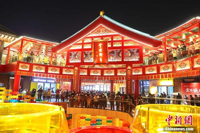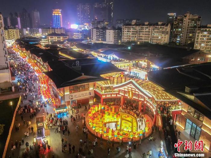 圖為無人機航拍古色古香年味十足的繩金塔歷史文化街區(qū),燈火璀璨,人潮涌動?!⒘?攝
