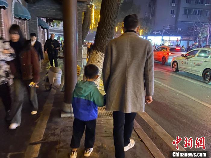 小林牽著外甥的手走在街頭?!⌒×止﹫D