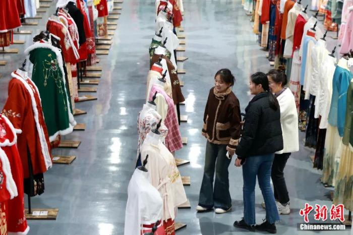 曹縣漢服協(xié)會會長胡春青介紹說,目前,曹縣生產(chǎn)漢服的企業(yè)有2282家,預計整個春節(jié)期間曹縣拜年服銷售額將超過4億元。