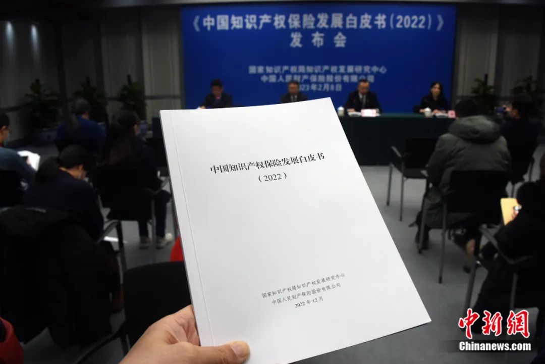 2023年2月8日,中國國家知識(shí)產(chǎn)權(quán)局知識(shí)產(chǎn)權(quán)發(fā)展研究中心、中國人民財(cái)產(chǎn)保險(xiǎn)股份有限公司在北京正式發(fā)布雙方合作完成的業(yè)內(nèi)首份《中國知識(shí)產(chǎn)權(quán)保險(xiǎn)發(fā)展白皮書(2022)》。孫自法 攝