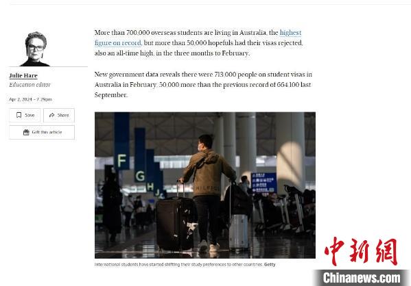 澳大利亞政府最新數(shù)據(jù)顯示,截至今年2月的三個月內(nèi),有超過5萬名申請簽證的留學(xué)生被拒。圖片來源于《澳大利亞金融評論》網(wǎng)站截圖。