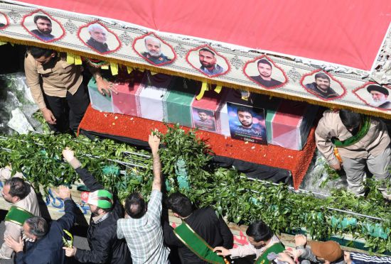 4月5日,在伊朗德黑蘭,人們參加伊朗駐敘使館遭襲事件中喪生的7名伊朗伊斯蘭革命衛(wèi)隊(duì)成員的葬禮。新華社記者沙達(dá)提攝