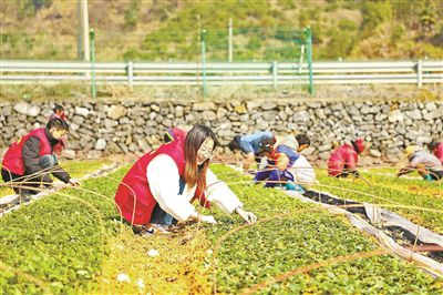 2月24日,在杭州淳安縣汾口鎮(zhèn)百畝畈村茶葉育苗基地,黨員志愿者與茶農(nóng)一道搶抓農(nóng)時培管茶苗,穿梭在育苗茶地中進行除草、順苗、施肥、壘溝等管理工作,并將出圃茶苗銷往外地。