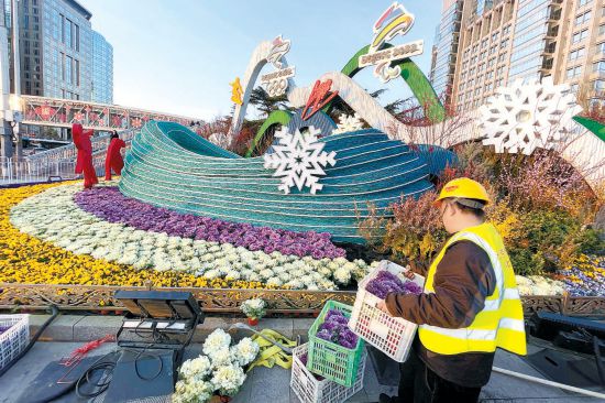 為冬殘奧會(huì)進(jìn)行景觀布置 14萬(wàn)株“超級(jí)鮮花”擺上街頭