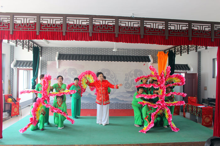 青縣盤古鎮(zhèn)大盤古村愛(ài)心小屋的文化志愿者正在為群眾表演文藝節(jié)目。 王笑譜攝