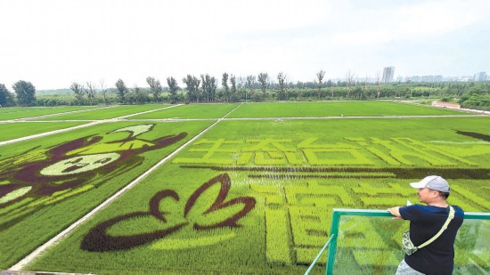 本報訊(記者 孫云柯)用大地田園作畫紙,用五彩水稻作畫筆。近日,通州區(qū)臺湖鎮(zhèn)稻小蟹藝術農場內的五彩稻田進入最佳觀賞期,一幅水田阡陌、青翠宜人的生態(tài)田園畫卷徐徐展開。