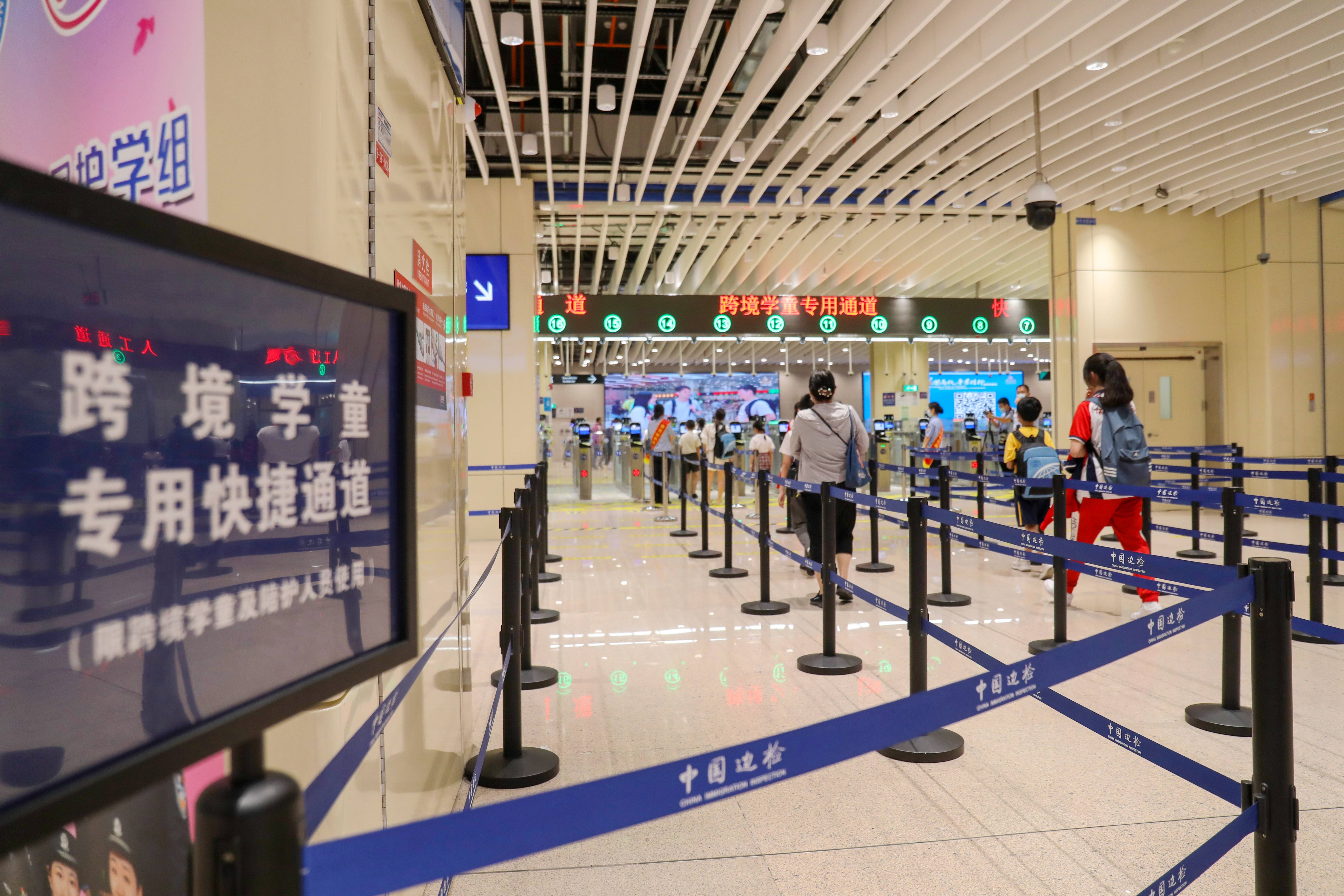 橫琴口岸旅檢大廳學(xué)童通道迎來了新學(xué)期入學(xué)的跨境學(xué)童。珠海邊檢總站供圖