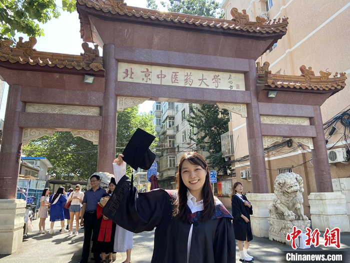 圖為劉沂柔在北京中醫(yī)藥大學(xué)校門(mén)前留影。 中新社發(fā) 受訪(fǎng)者供圖