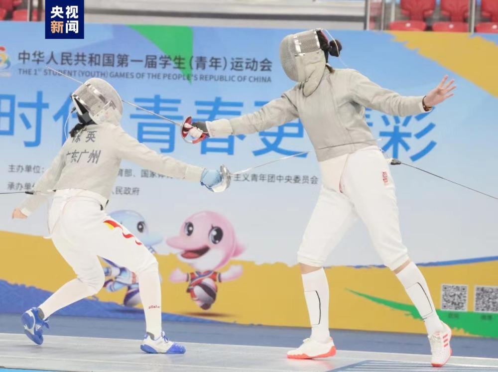11月7日,第一屆全國學(xué)生(青年)運動會擊劍男女佩劍團(tuán)體決賽在廣西體育局三塘體育訓(xùn)練比賽基地綜合體育館進(jìn)行,南京隊和廣州隊?wèi)?zhàn)勝各自對手奪得金牌。