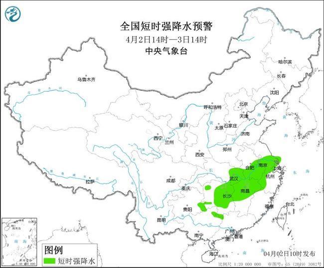 預(yù)計(jì),4月2日14時(shí)至3日14時(shí),湖北東南部、安徽中南部、江蘇南部、上海、湖南、江西中北部、浙江西部和北部等地部分地區(qū)有大到暴雨,其中,江西北部等地局地有大暴雨(100~150毫米)。上述部分地區(qū)伴有短時(shí)強(qiáng)降水(最大小時(shí)降雨量30~50毫米,局地可超過70毫米),局地有雷暴大風(fēng)或冰雹等強(qiáng)對流天氣。