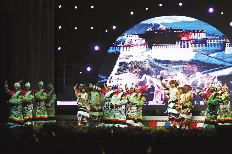 拉薩北京實(shí)驗(yàn)中學(xué)學(xué)生表演民族舞蹈。 (本版圖片均由拉薩北京實(shí)驗(yàn)中學(xué)提供)