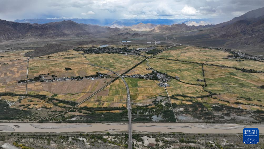 從空中俯瞰西藏拉薩至日喀則高等級(高速)公路南木林段(9月11日攝,無人機照片)。