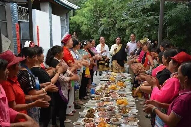 云南省大理州洱源縣鄭家莊各族村民齊聚一堂,吃一頓中秋團(tuán)圓飯。(資料照片)