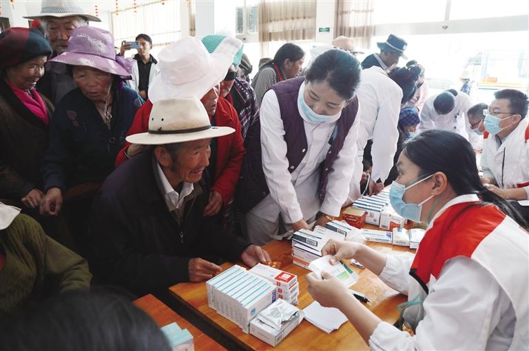 醫(yī)療團(tuán)隊(duì)按照診斷結(jié)果免費(fèi)發(fā)放藥品。