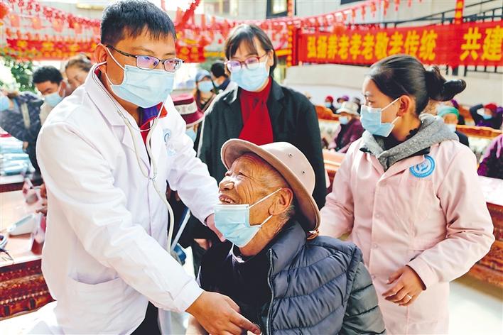 每年的10月是山南市瓊結(jié)縣的“敬老月”,2020年10月30日,縣衛(wèi)生系統(tǒng)黨總支組織縣人民醫(yī)院、藏醫(yī)院、疾控中心、醫(yī)保局等醫(yī)務(wù)工作者,在縣特困人員集中供養(yǎng)中心開展了以“弘揚(yáng)養(yǎng)老孝老敬老傳統(tǒng)、共建共享老年友好社會”為主題的健康服務(wù)活動。讓老人們切切實(shí)實(shí)感受到黨和政府的關(guān)懷和溫暖,感受到全社會的關(guān)愛和重視。 圖為縣人民醫(yī)院援藏醫(yī)生正在為老人檢查身體(2020年10月30日攝)。
