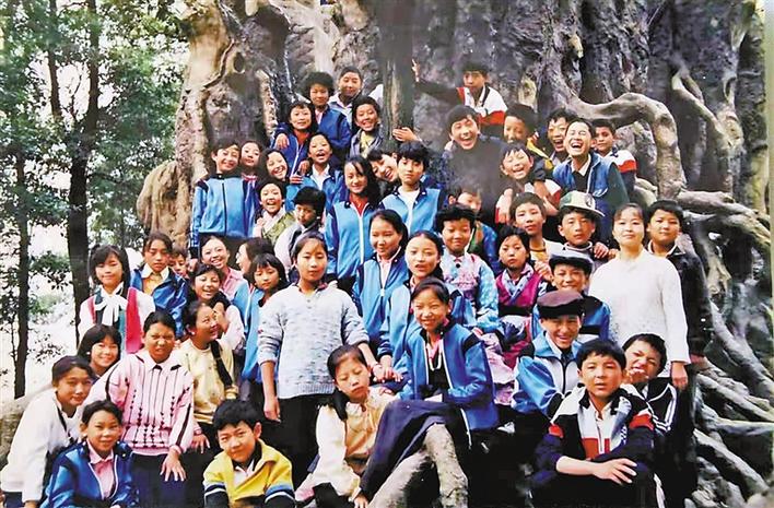 1984年,中央召開第二次西藏工作座談會并提出“智力援藏”。同年,中央要求具備條件的省市籌建西藏中學(xué)并開辦西藏班。1985年起,全國13個省市的西藏班陸續(xù)開班。 圖為重慶西藏中學(xué)89級新生剛?cè)胄r的合影。