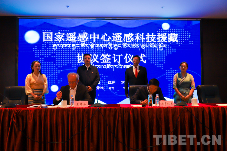 會上,科技部國家遙感中心與西藏自治區(qū)科學技術(shù)廳簽署了《關(guān)于遙感科技援藏的戰(zhàn)略合作協(xié)議》,并進行了國家遙感中心西藏分部授牌儀式。