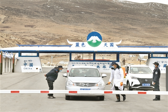 為當雄縣羊八井藍色天國對進出車輛進行消毒安檢。(本組圖片由拉薩融媒視覺組攝)