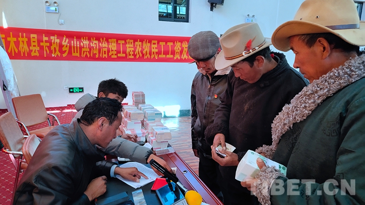 中國(guó)西藏網(wǎng)訊 11月13日上午,西藏自治區(qū)日喀則市南木林縣卡孜鄉(xiāng)山洪溝治理工程項(xiàng)目民工工資發(fā)放暨勞務(wù)合作社分紅儀式在當(dāng)?shù)夭匦鄞迮e行。此次分紅儀式共兌現(xiàn)民工工資1617832.09元、勞務(wù)分紅39000元。