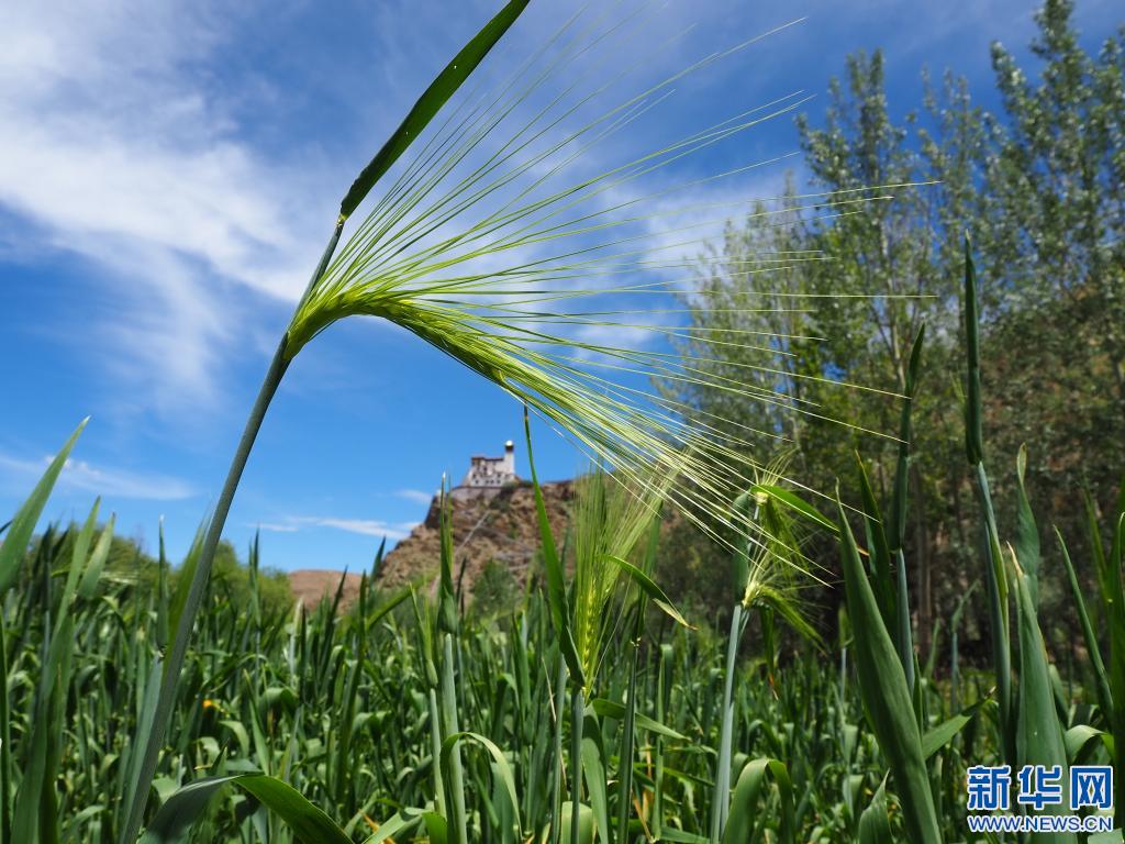 站在西藏歷史上第一塊農(nóng)田薩熱索當上看西藏第一座宮殿雍布拉康(6月24日攝)。新華社記者 金一清 攝