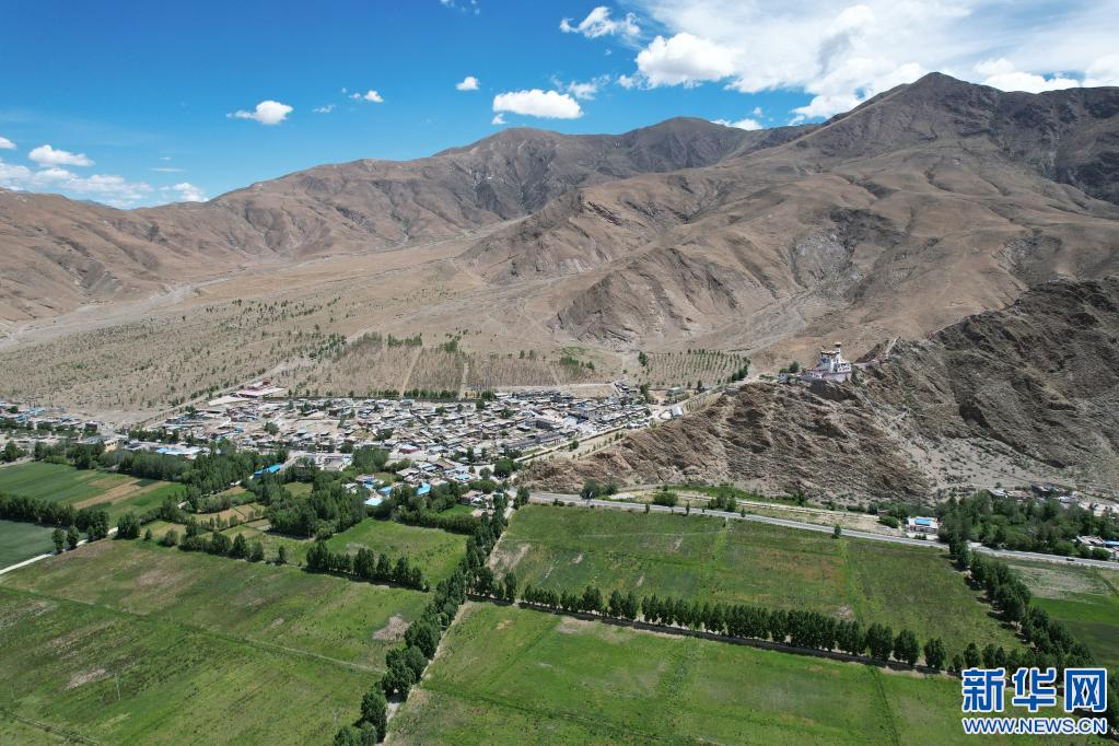 遠眺雍布拉康和門中崗社區(qū)(無人機照片,6月24日攝)。新華社記者 司源 攝