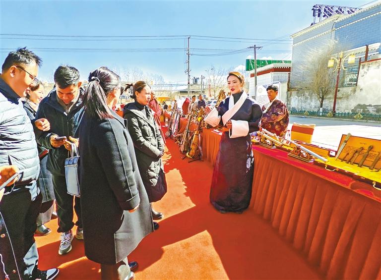 圖為與會(huì)人員在參觀拉孜縣非遺展區(qū)。記者 旦增嘎瓦 攝