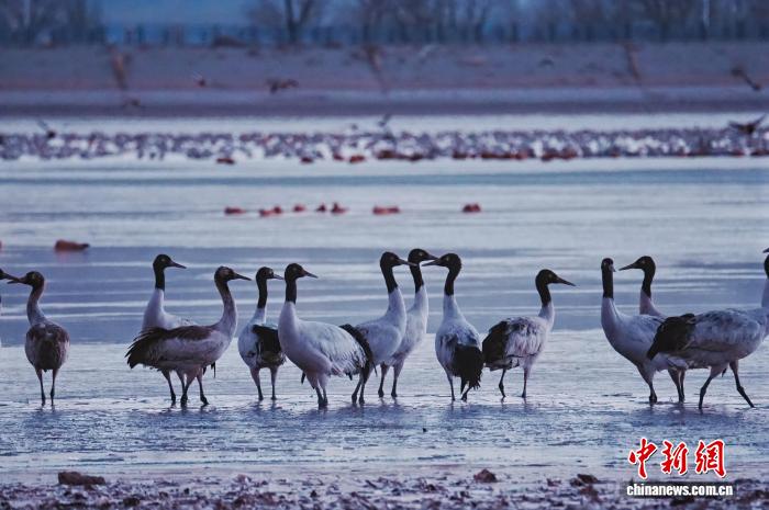 圖為1月17日,林周縣越冬的黑頸鶴。拉薩市文化和旅游局供圖