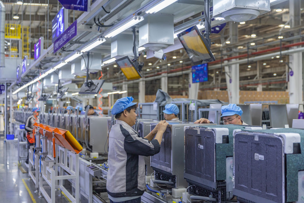 4月9日,在位于重慶市江北區(qū)的重慶海爾洗碗機互聯工廠,工作人員在生產線上作業(yè)。新華社記者黃偉 攝
