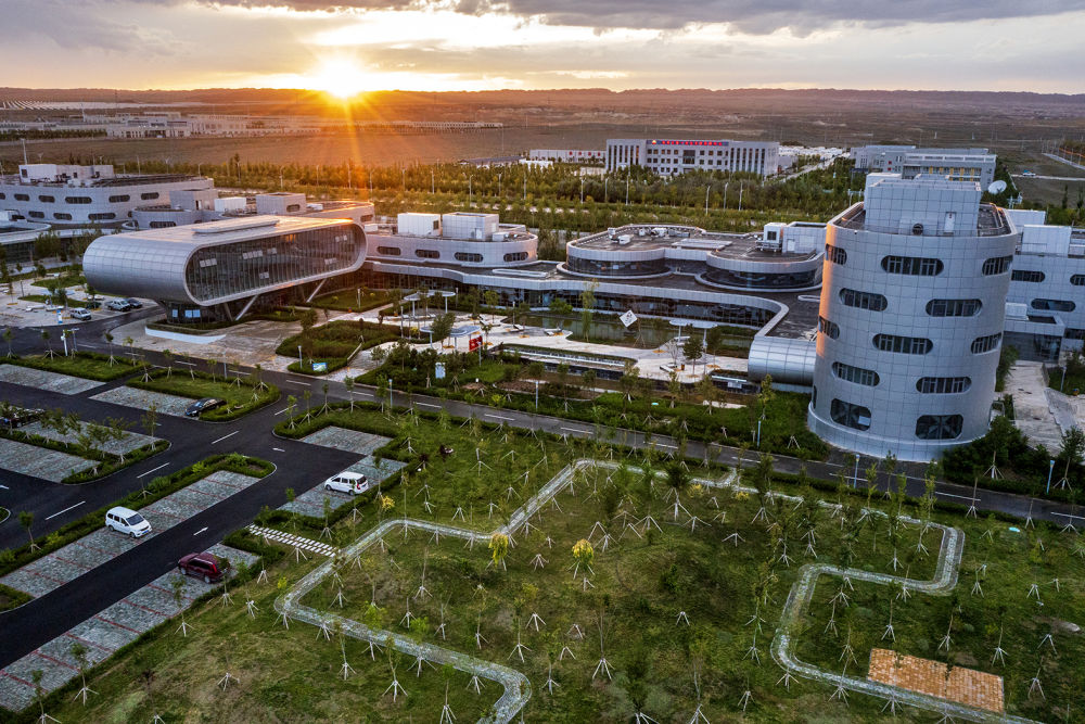 從空中俯瞰克拉瑪依云計(jì)算產(chǎn)業(yè)園區(qū)(2021年8月13日攝)。新華社發(fā)(閔勇 攝)