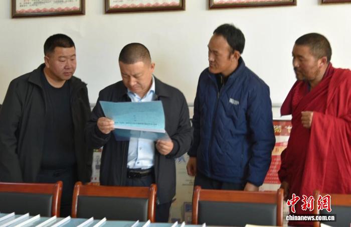 圖為甘南州委常委、統(tǒng)戰(zhàn)部部長王力(左二)調(diào)研寺廟管理工作。甘南州委統(tǒng)戰(zhàn)部供圖